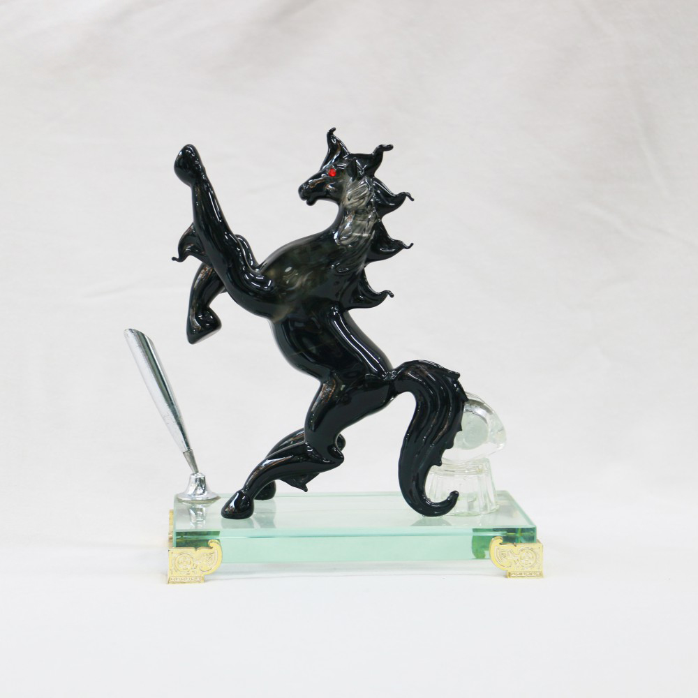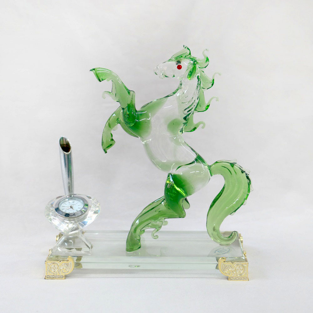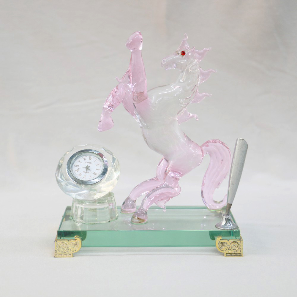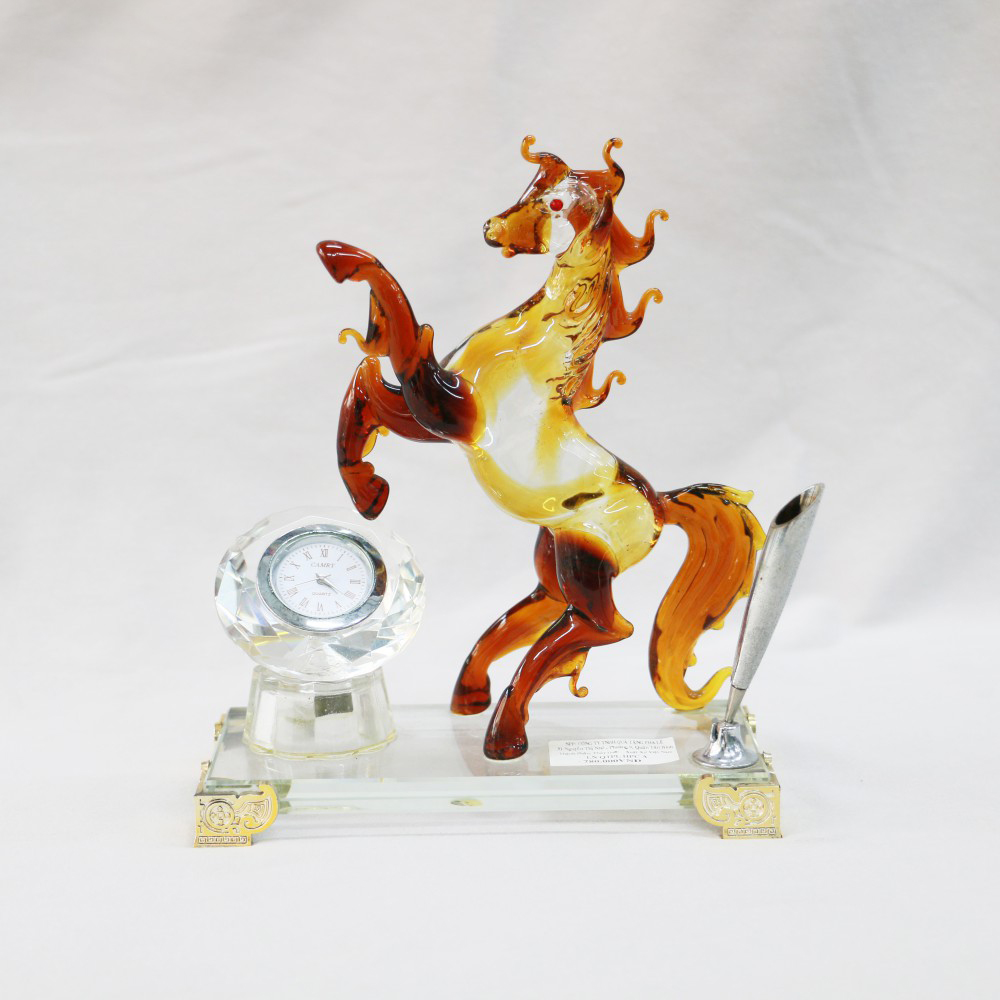 Tác phẩm được chế tác thủ công từ thủy tinh cao cấp, tinh xảo đến từng chi tiết. Sự kết hợp độc đáo giữa tượng ngựa, đồng hồ pha lê và ống cắm bút khiến Nhất Mã Doanh Thời không chỉ là vật phẩm phong thủy, mà còn là món quà sang trọng, hữu dụng trong không gian sống và làm việc.