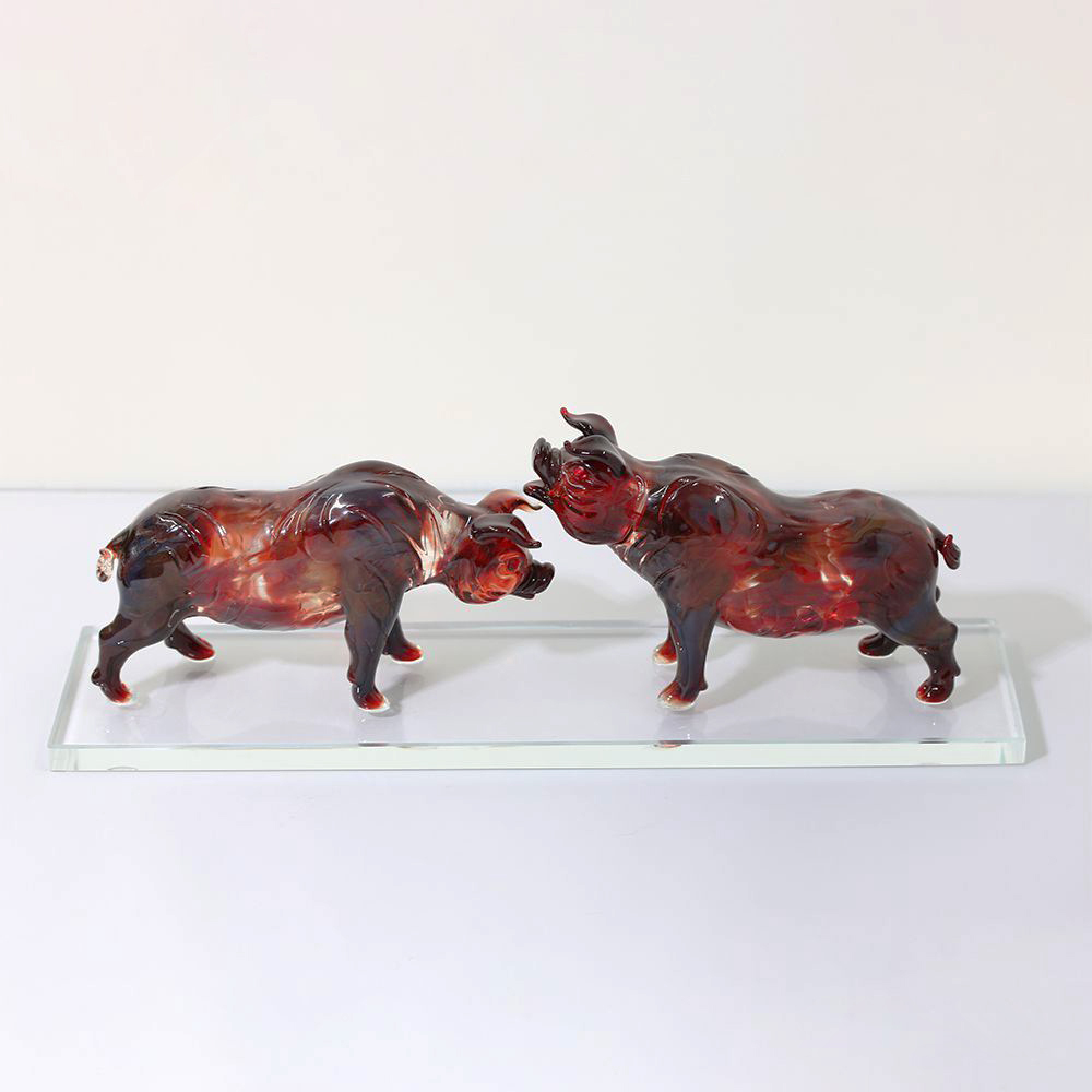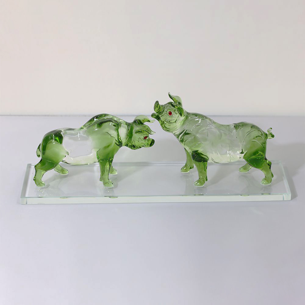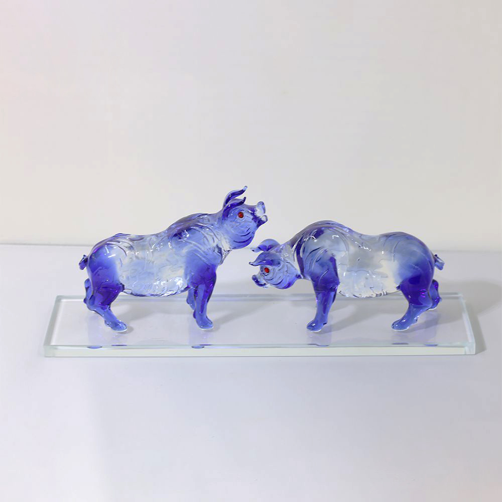 Tượng được chế tác tinh xảo từ thủy tinh cao cấp, với ba phiên bản màu sắc: xanh lá, xanh dương và đỏ. Mỗi sắc màu đều trong trẻo, sang trọng và chứa đựng một tầng ý nghĩa phong thủy riêng biệt. Song Trư Cát Khánh không chỉ là một món đồ trưng bày nghệ thuật mà còn là vật phẩm phong thủy trợ vận, mang lại nguồn năng lượng tích cực, tài lộc và an lành cho gia chủ.